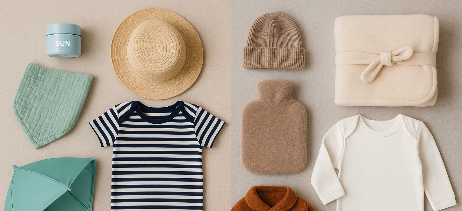 Grote verschillen tussen een zomer- en winteruitzet zijn er eigenlijk niet, de basis blijft grotendeels hetzelfde. Maar afhankelijk van het seizoen waarin je kindje wordt geboren, zijn er wel een paar extra’s die handig (of onmisbaar) zijn. Je wilt je baby tenslotte goed beschermen tegen kou of warmte. Een pasgeboren baby kan zijn of haar temperatuur nog niet goed reguleren. Daarom is het in álle seizoenen belangrijk om ook rompers met lange mouwen in huis te halen.